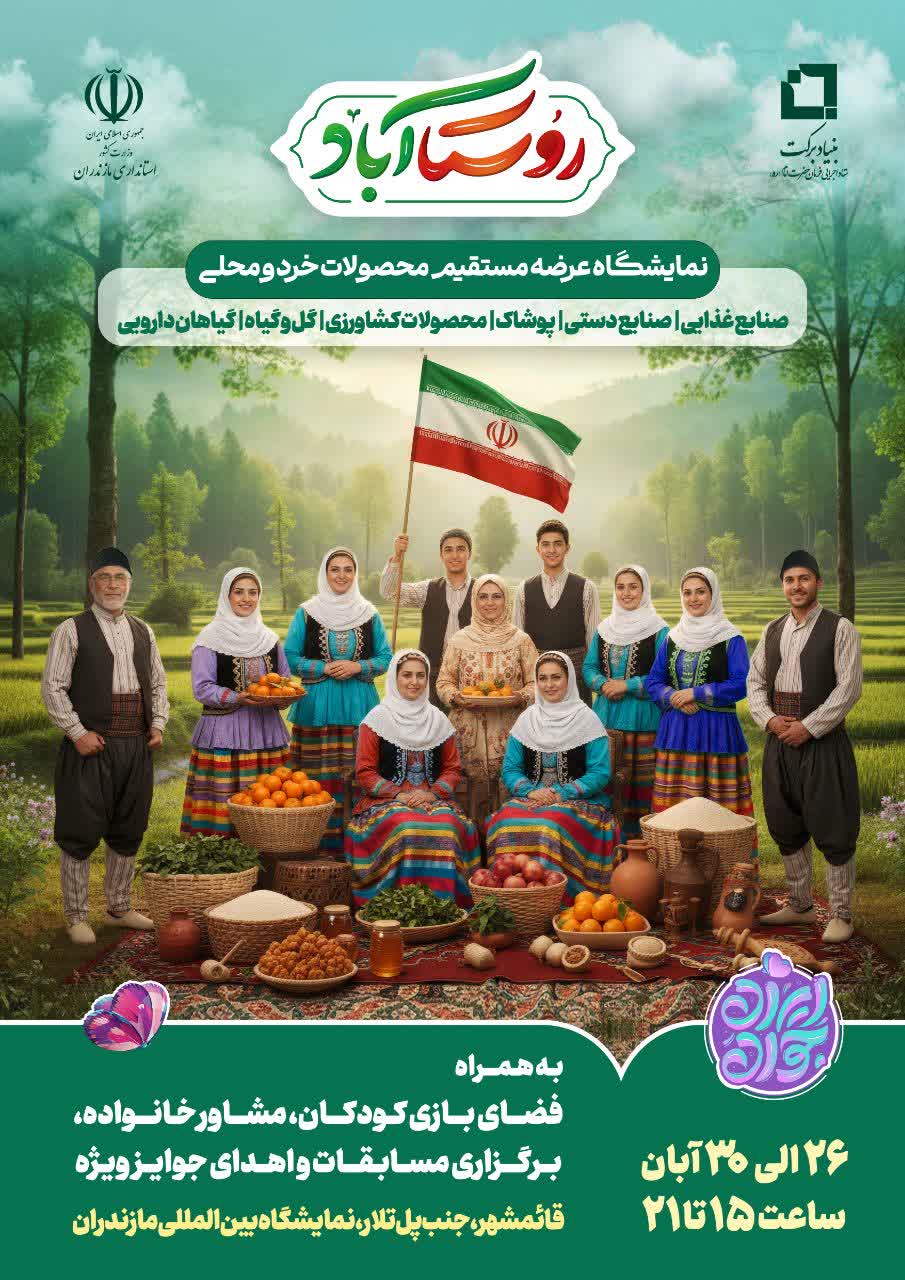 نمایشگاه روستا آباد از ۲۶ تا ۳۰ آبانماه هر روز از ساعت ۱۵ تا ۲۱ در قائمشهر، جنب پل تلار، نمایشگاه بینالمللی مازندران میزبان عموم علاقهمندان خواهد بود.